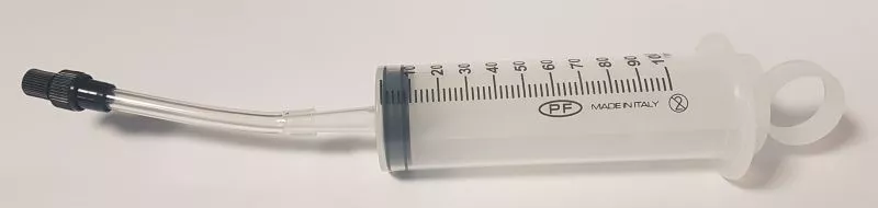 LA SIRINGA E’ FORNITA DI TBO FLESSIBILE CHE PERMETTE DI COLLEGARLA CON RACCORDI (FORNITI) ALLE VALVOLE PRESTA O SCHRADER
