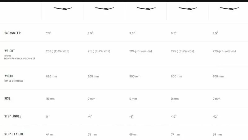 44 mm : BakckSweep 7,5° / PESO 209 gr / Larghezza 820 mm / Rize 15 mm / Angolo attacco : 0°